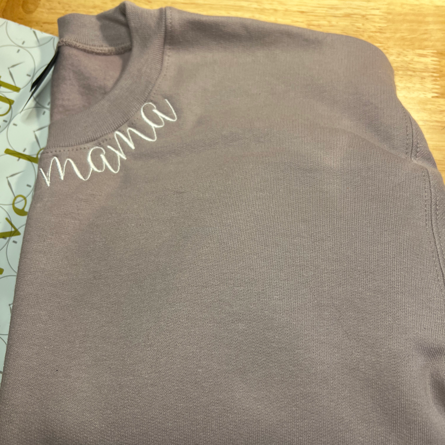 I love you a bushel and a peck and MAMA around the neck… or however that saying goes! Mama stitching act the neck collar with options for personalization of names at the sleeves.